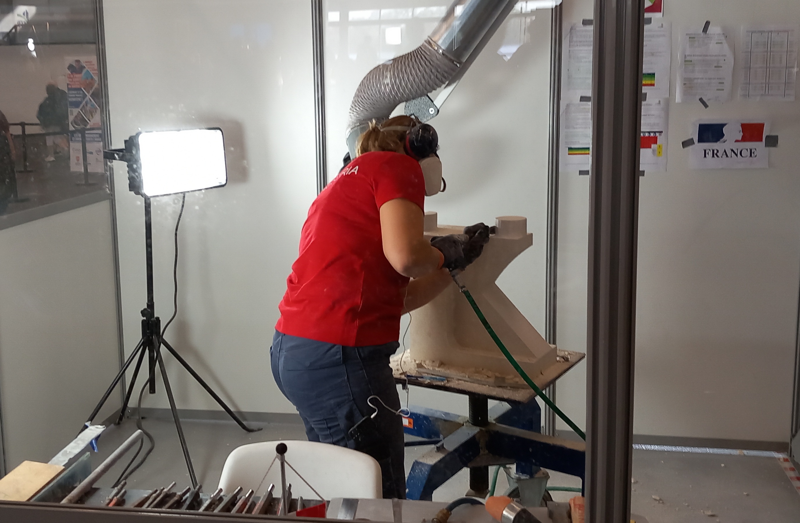 J'ai eu la chance de me rendre aux finales internationales des Worldskills à Bordeaux et de voir les tailleurs de pierre en action. Un sujet très intéressant qui mêlait CAO pour la création des panneaux de taille et FAO pour faciliter les épannelages (pour rappel pas de disqueuse , tous les épannelages étaient réalisés au pétard). Je vous partage quelques photos, désolé pour la qualité mais c'est pas mon fort ;)